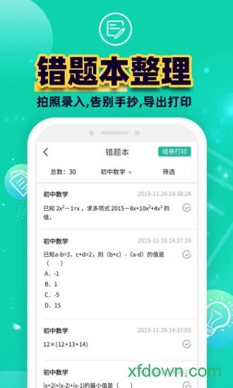 【错题组卷】新增错题筛选功能,支持按知识点、错误频率等条件灵活筛选错题,既可全选所有错题生成综合练习卷,也可针对特定薄弱环节生成专项训练,满足个性化复习需求。