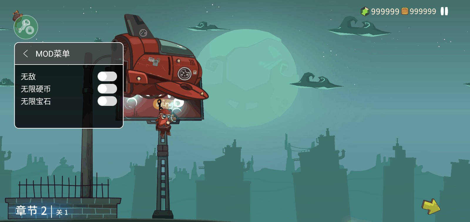 游戏解锁了无限金币还有宝石福利,玩家点击屏幕附近的菜单就可以体验