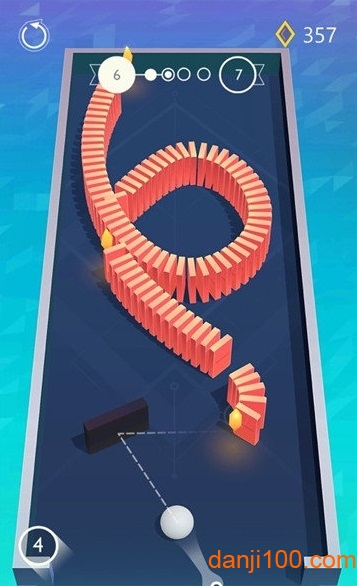 游戏最大的特色在于将物理引擎与益智解谜完美结合。玩家需要反复练习瞄准技巧,掌握不同力度下小球的运动轨迹。游戏设置了多样化的解谜元素,包括移动平台、弹跳装置等特殊障碍,为简单的骨牌玩法增添了更多变数。当玩家成功触发多米诺效应时,不仅能欣赏到骨牌依次倒下的壮观场面,还能收集掉落的水晶来提升分数。随着关卡推进,玩家将遇到更复杂的骨牌排列方式,需要运用空间想象力来规划最佳撞击路线。游戏还特别设计了成就系统,鼓励玩家挑战更高难度的完美通关。