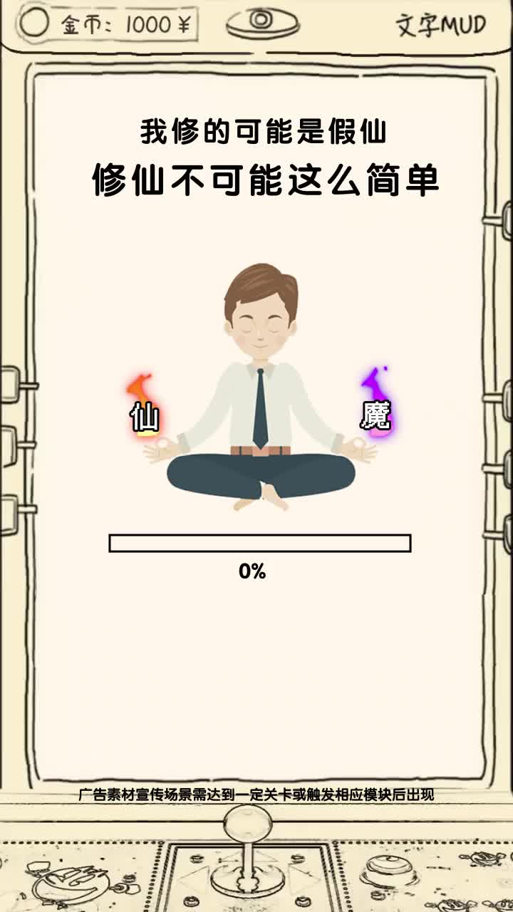 纯文字历练打怪,挂机渡劫飞升!简洁的文字描述配合水墨风格,营造出独特的修仙氛围。