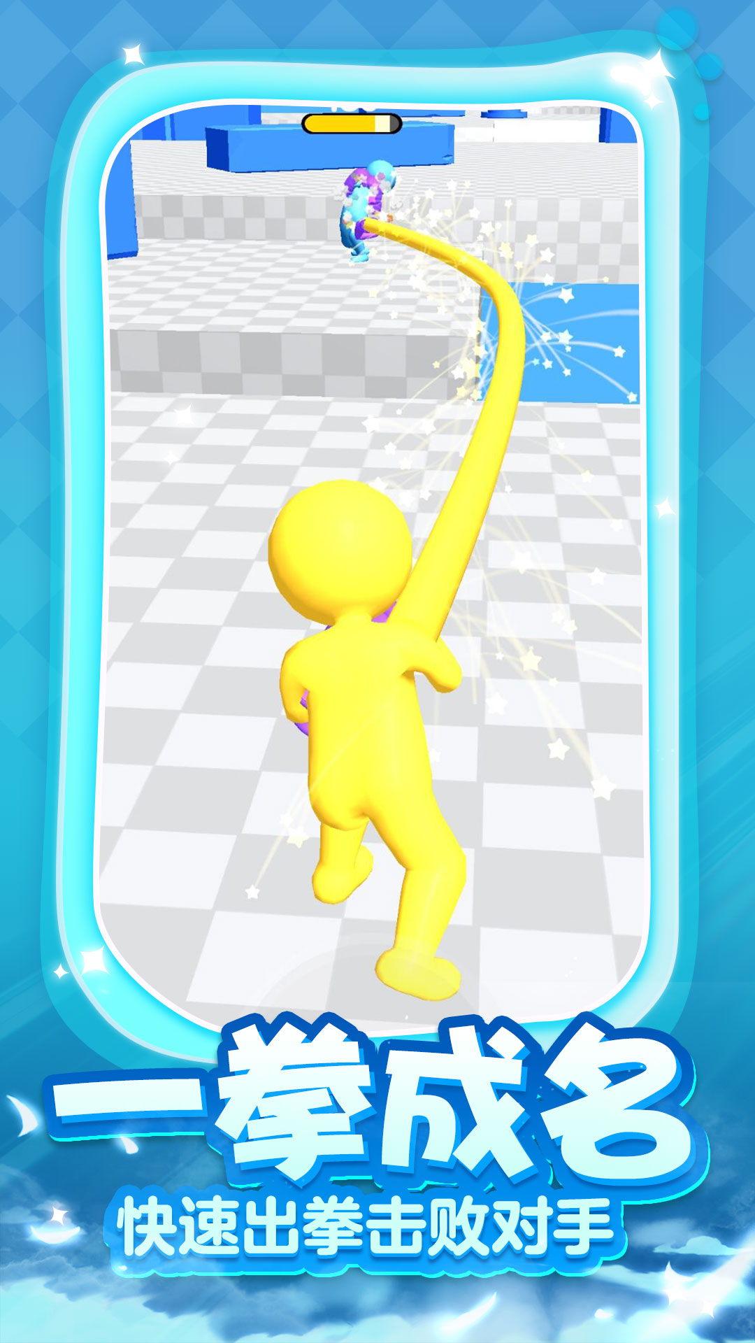 《一拳成名》是一款充满魔性乐趣的休闲动作游戏,玩家将操控一个拥有超长手臂的橡皮人,通过滑动屏幕来伸长拳头击飞敌人。游戏最大的特色在于其夸张的物理效果和搞笑的战斗方式,橡皮人的手臂可以无限延伸,玩家需要精准计算角度和力度,利用地形和机关来击败对手。游戏采用清新明亮的卡通画风,搭配流畅的操作手感和丰富的关卡设计,既能带来爽快的战斗体验,又能锻炼玩家的策略思维。无论是想要放松解压,还是挑战高分,《一拳成名》都能带来独特的游戏乐趣。
