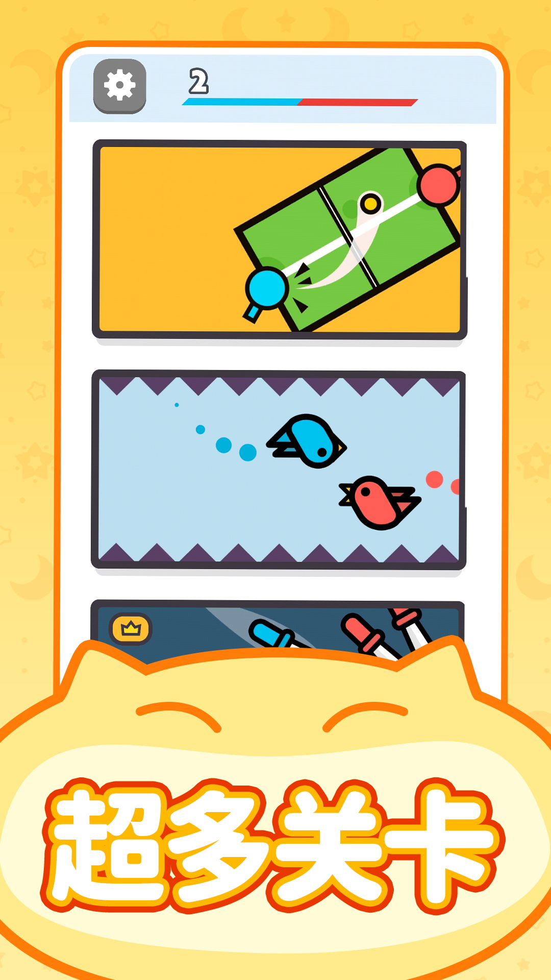 这是一款专为双人设计的竞技类解压游戏,通过简单易上手的操作和充满挑战性的玩法,为玩家带来前所未有的解压体验。游戏采用鲜艳明快的卡通画风,搭配动感十足的音效,让玩家在紧张刺激的对决中释放压力。无论是与好友组队还是随机匹配对手,都能享受到欢乐互动的乐趣。游戏支持多种对战模式,包括限时挑战、分数比拼和道具对抗等,每种模式都经过精心设计,确保玩家获得多样化的游戏体验。