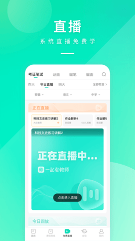 【24年,邀您免费看直播】每周17场的名师公开课由特级教师团队主讲,内容涵盖最新考纲解读与押题预测。直播支持多设备同步观看,课后可领取独家备考资料包。新增的"1对1诊断"功能允许用户上传试讲视频获得专业点评,备考困惑还能通过在线咨询获得即时解答。