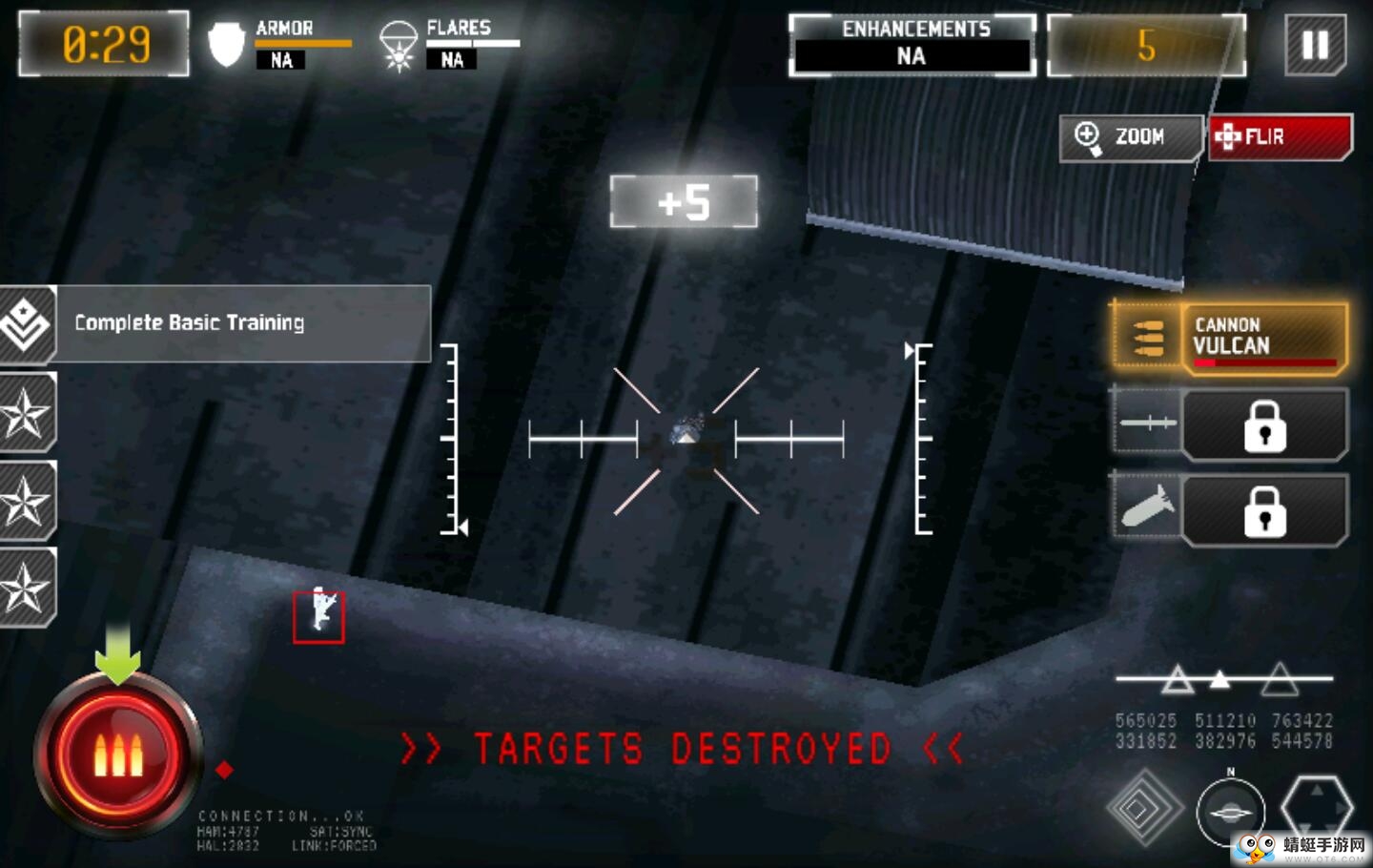 本作在模拟真实与游戏性之间取得了完美平衡,夜视模式下的黑白画面配合动态光影营造出紧张的战斗氛围。独创的武器过热系统要求玩家把握射击节奏,而智能导弹的自动锁定功能则简化了复杂操作。防御系统设计尤为出彩,玩家可以发射拦截导弹对抗地面防空火力,这种设定虽然带有科幻色彩但极大提升了游戏爽快感。养成系统深度十足,从机身装甲到火控雷达均可升级,不同配件组合能衍生出多种战术流派。