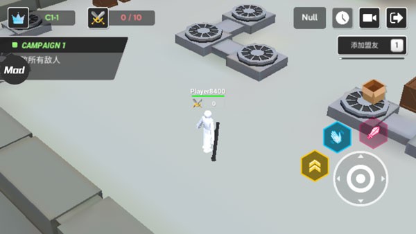 进入游戏后,屏幕左边控制人物移动,右边有着攻击键、跳跃键和拾取键,操作简单易上手;