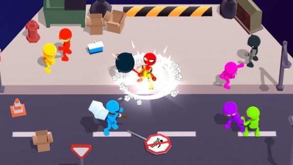 通过简单的点击操作即可控制火柴人进行战斗,在离线模式下可以拾取各种道具作为武器,与多个AI对手展开激烈较量;