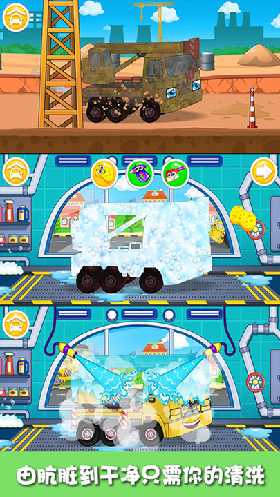 ·游戏设计了详细的洗车步骤教学,通过趣味互动帮助小朋友了解汽车保养知识