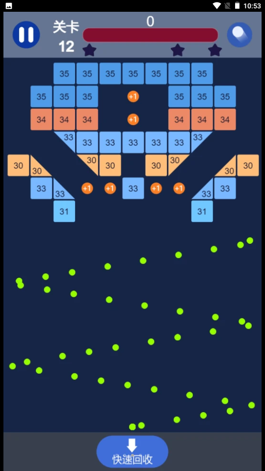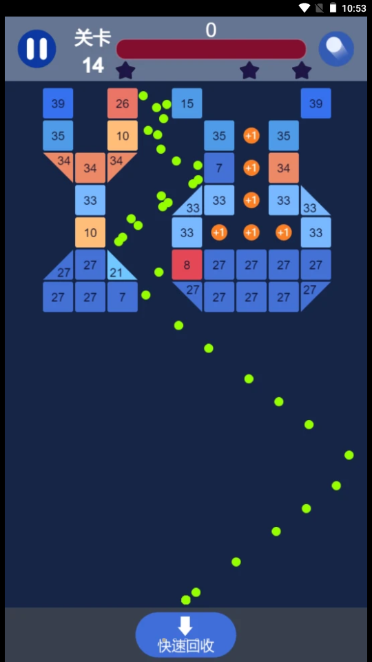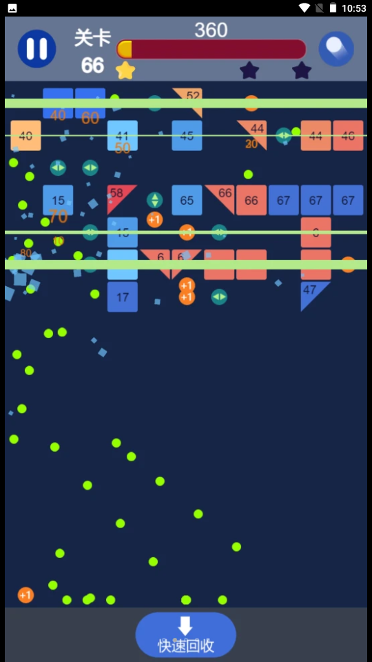 1、游戏提供丰富的道具系统,包括"震碎"可以瞬间清除大片砖块,"加球"能增加弹球数量,"加线"可扩展挡板长度,让闯关事半功倍。