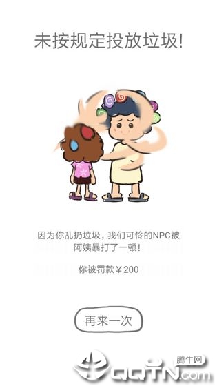 3.玩家们将要把垃圾正确的进行分类,如果错了就会受到惩罚哦。游戏设有错误提示系统,分类错误时会给出详细解释,帮助玩家理解正确分类标准。连续错误会触发趣味惩罚动画,比如垃圾桶会"呕吐"出错误投放的垃圾,既幽默又让人印象深刻。