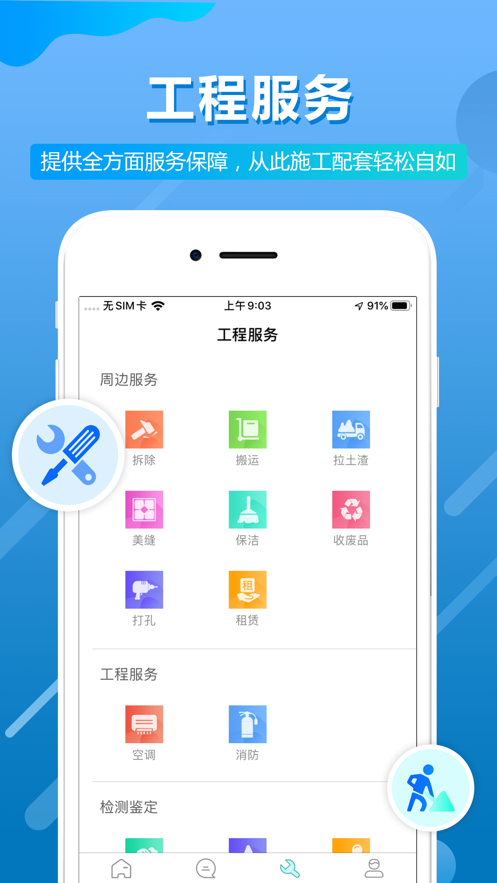 4.工程服务:整合2000+配套服务商资源,涵盖设计、监理、保洁等12类服务。支持服务比价、进度追踪、质量验收全流程管理,工程延期率降低45%。