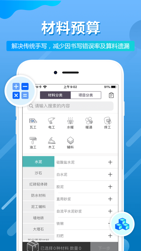 1.材料计划:采用AI算法实现毫米级精度算料,支持200+常见建材自动换算,可生成带3D示意图的物料清单。系统自动检测漏项错项,相比人工计算可节省80%时间,误差率降低至1%以下。