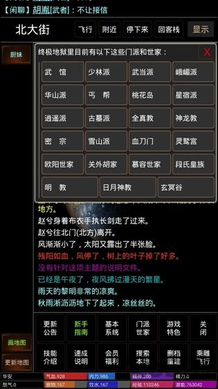 风起云涌,苍穹破。在这片充满传奇色彩的武侠大陆上,你将经历从无名小卒到一代宗师的蜕变历程。游戏以细腻的文字描绘出一个波澜壮阔的修真世界,在这里,你可以选择拜入名门正派潜心修炼,也可以独辟蹊径自创功法。随着剧情推进,玩家将结识性格各异的NPC角色,体验爱恨情仇的江湖恩怨。每一次转世重生都是全新的开始,每一次修为突破都将带来质的飞跃。在这个充满无限可能的修真世界里,你的每一个选择都将影响整个江湖格局。