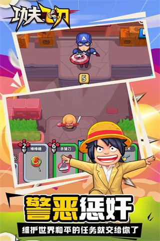 功夫飞刀是一款融合了无厘头搞笑风格与策略战斗的休闲手游,玩家将化身飞刀高手,在充满恶搞元素的关卡中展开冒险。游戏不仅提供了丰富的武器系统,从传统飞刀到奇葩的拖鞋、大葱等道具应有尽有,还加入了抽卡养成、挂机收益等趣味玩法。穿越不同时空的章节设计让玩家邂逅包租公、雷神等经典角色,而创新的武器碰撞机制则让战斗充满策略性。无论是想体验轻松挂机收菜,还是挑战高难度BOSS战,这款游戏都能满足你的需求。