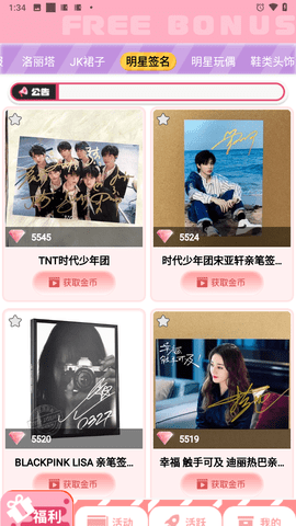 1、创新任务奖励机制让用户轻松获取福利,通过收集卡片和参与转盘抽奖,有机会免费获得限量版明星礼物。平台定期更新任务内容,保持玩法新鲜有趣。