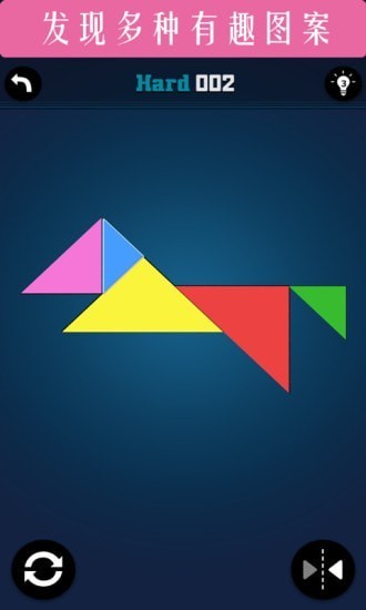 1、玩家通过触控操作拖动屏幕上的七巧板拼块,可以自由旋转和翻转每个三角形,尝试各种组合方式来完成目标图形;