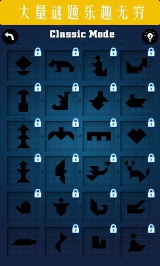 1、游戏采用创新的七巧板拼图机制,将传统七巧板与现代电子游戏完美结合,创造出独特的拼图体验和挑战方式;