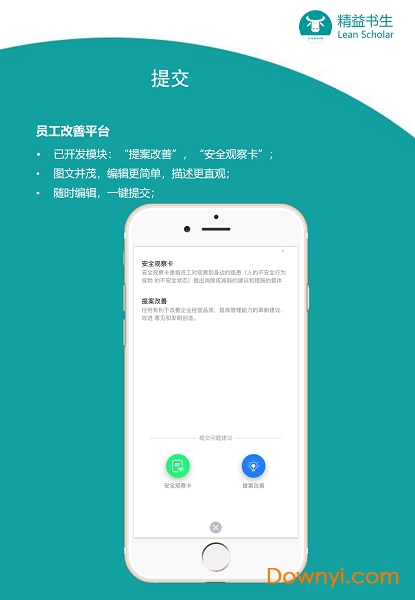 精益书生手机版专为企业管理场景设计,包含《提案改善》和《安全观察卡》两大核心功能模块。通过移动端实现随时随地提交提案、快速审批和精准追踪,大幅提升工作效率。应用支持图文并茂的内容展示,内置社交互动功能如点赞评论,促进团队协作交流。作为无锡乐善网络科技有限公司的拳头产品,精益书生专注于企业改善管理领域,致力于为企业提供简单高效的数字化解决方案。其创新的移动审批流程和实时反馈机制,让企业管理变得更加智能化和透明化。