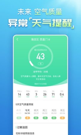 实时天气信息:实时获取您所在位置的天气预报和空气质量污染指数