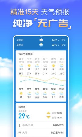 天气预报纯应用是一个专业的天气预报平台,支持查询全国市、县和区的天气信息,每个用户都可以在这里查看分钟级天气预报信息,并会及时提醒用户查看,以便用户快速做好预防工作。