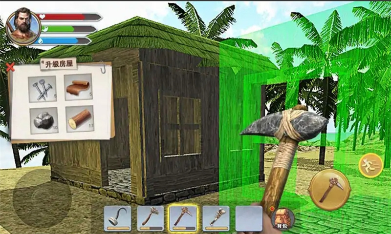 游戏开局仅提供基础工具——鱼竿与鱼叉,玩家需通过垂钓获取食物,用漂流瓶收集淡水。随着探索深入,可解锁更多生存技能:砍伐树木建造木屋,燧石取火驱赶野兽,甚至制造简易帆船逃离孤岛。第一人称视角让暴雨倾盆时的视线模糊、饥饿导致的行动迟缓等细节更具冲击力。特别设计的"体力-健康-精神"三维系统,要求玩家在捕猎、建造与休息间保持平衡。每当夜幕降临,篝火旁整理物资的片刻宁静,正是为明日生存积蓄力量的珍贵时刻。