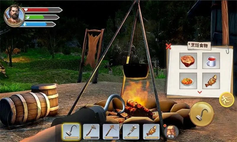 3、深度制造系统包含百余种可合成物品,从原始石斧到自动捕兽装置,科技树随生存天数逐步解锁,见证人类文明从石器时代到铁器时代的演进。