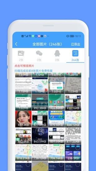 2、手机照片图片,微信、qq照片、朋友圈、空间照片一键恢复。优化了图片恢复算法,即使是长期删除的照片也有更高恢复成功率。
