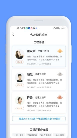 2、满足用户的更多恢复需求,支持专业工程师1对1的指导恢复。工程师团队7×24小时在线,随时解答各类数据恢复难题。
