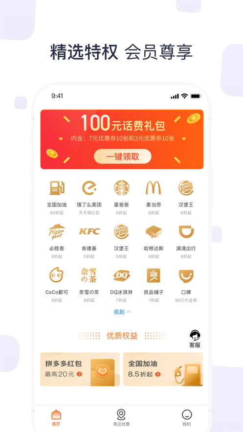 A神奇卡提供大量全国大牌优惠,超100项尊享特权,包括:购物折扣,加油优惠,热门会员充值优惠等。这些优惠在神奇卡APP中可查看,按照优惠说明即可使用优惠。平台还会定期推出限时特惠活动,会员可享受折上折等叠加优惠,让您的消费更加超值。
