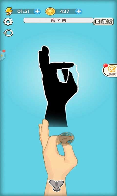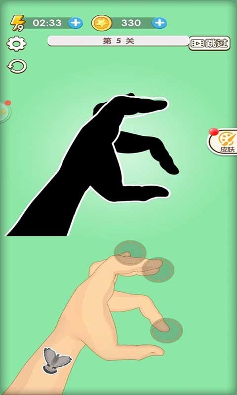 3、每个关卡都设置了特定的形状要求,玩家需要精准控制手指位置和角度,组合成符合要求的影子图案。成功匹配后即可通关,获得奖励。