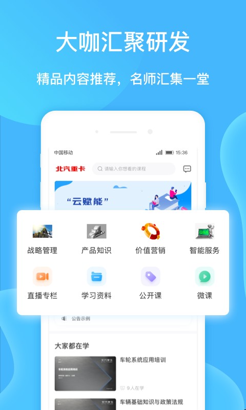 云赋能APP是一款专为企业员工打造的智能化培训平台,致力于为汽车行业从业者提供专业、高效的学习体验。平台整合了丰富的课程资源,涵盖专业技能、企业文化、职业发展等多个领域,通过多样化的学习内容和灵活的学习方式,帮助员工提升工作能力与综合素质。无论是系统化的知识体系,还是碎片化的学习模式,云赋能都能满足不同用户的学习需求。简洁直观的操作界面,让每位用户都能轻松上手,享受便捷高效的学习之旅。