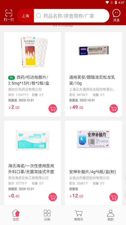 2、药品数据库包含10万+SKU,涵盖处方药、OTC药品、医疗器械等全品类,每个商品都配有高清实物图、详细说明书和用户评价系统;