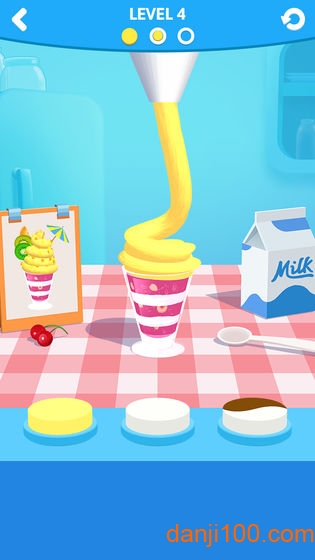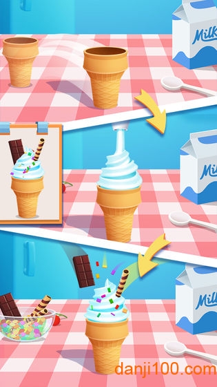 3.以冰淇淋制作为核心玩法,鼓励玩家突破常规思维。你可以尝试将咸味食材融入甜品,或是创造分层渐变的视觉效果,系统会根据创意度给予额外奖励。