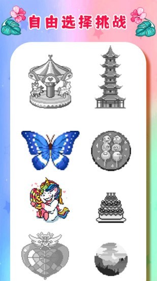 1、拥有数量庞大的像素画作库,难度从入门到专业级应有尽有,适合各个年龄段的玩家。