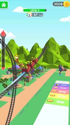 2、深度升级系统让过山车进化不止于外观。收集沿途金币可强化加速装置、增加车厢数量,甚至解锁磁悬浮等黑科技轨道。高级轨道支持多路线交叉设计,让玩家创造令人惊叹的立体过山车网络。