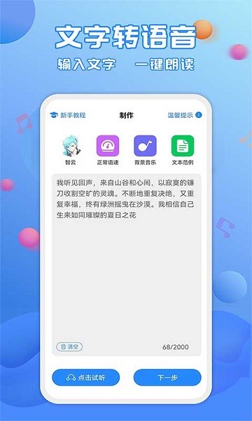 ·文字转语音功能强大,只需输入文字内容,即可一键生成自然流畅的语音,大大提升工作效率