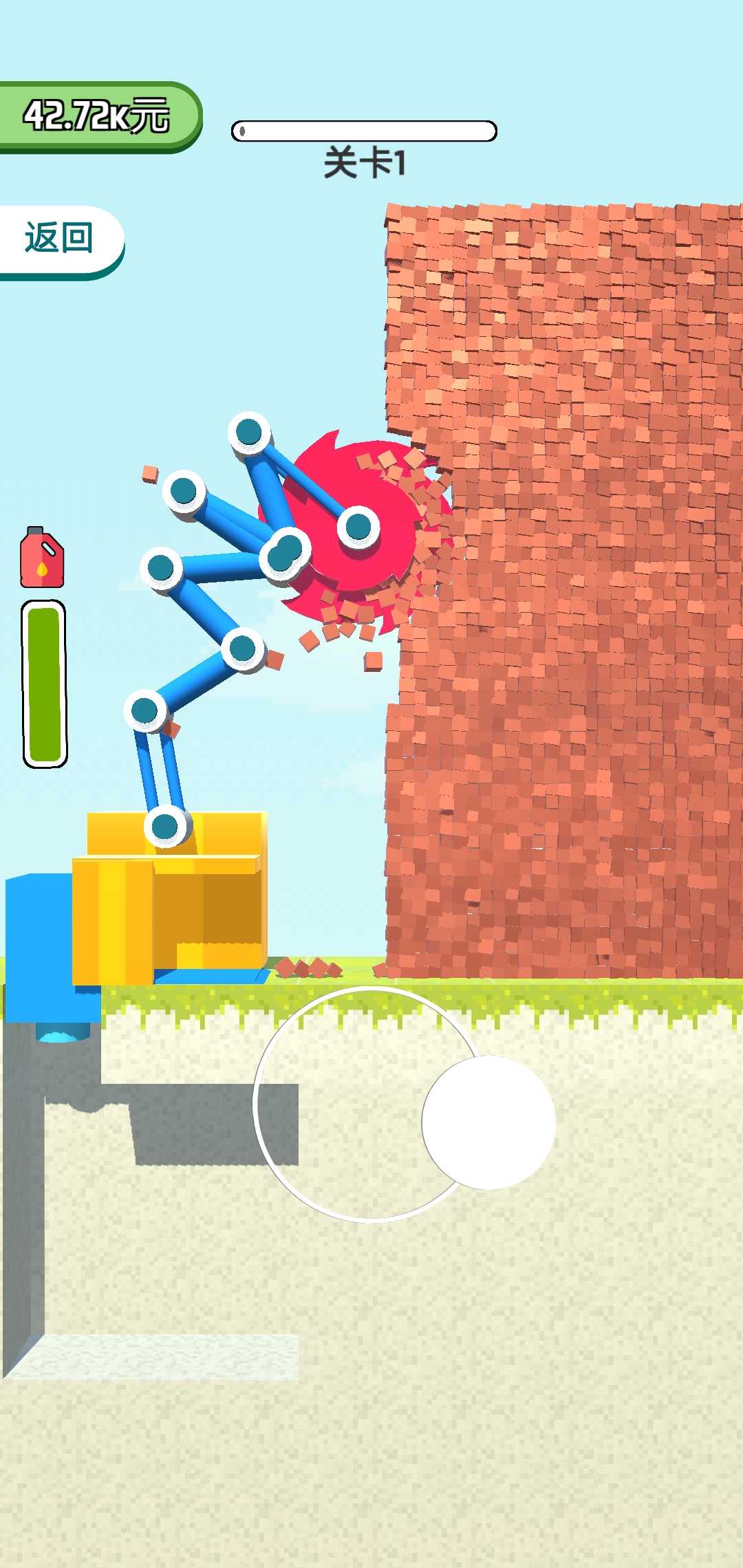 2.升级油箱尺寸可以让你的挖掘机续航能力更强。大容量油箱意味着更持久的作业时间,玩家可以一口气拆除更多墙体而无需频繁补充燃料。合理的燃油管理策略也是游戏的一大乐趣所在。