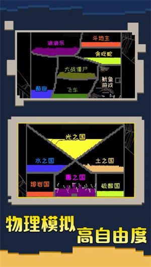 游戏采用先进的像素物理引擎技术,完美模拟重力、碰撞等真实物理现象,让每个方块都遵循物理规律进行互动。2、精心打造的剧情线贯穿整个游戏世界,玩家在自由创造的同时还能体验引人入胜的冒险故事。3、提供超过200种不同风格的建筑模块,从简单的房屋到复杂的机械装置,玩家可以随心所欲地组合创造。4、独特的天气系统和昼夜交替机制,为游戏世界增添更多真实感和可变性。