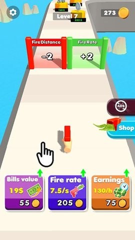 3、财富积累升级系统:通过收集金币和完成挑战,玩家可以逐步升级钞票枪的性能。丰富的自定义选项包括多种炫酷的枪械皮肤和背景主题,让每位玩家都能打造出独一无二的游戏风格。随着等级提升,还能解锁特殊技能和强化效果。