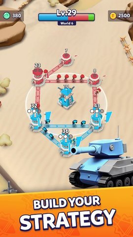 1、独特的连线玩法,通过连接塔楼来部署部队,操作简单但策略性强,玩家需要精心规划路线才能取得胜利。