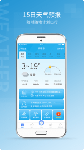 可以打开该软件查看未来15天的详细天气情况,该软件覆盖国内外主要城市和地区