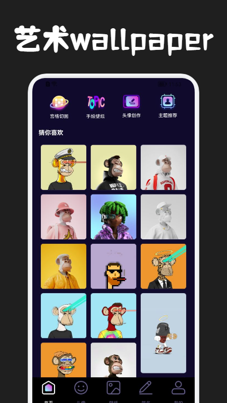 3、丰富潮流艺术头像、壁纸轻松拿:一键下载功能,支持多种分辨率适配不同设备