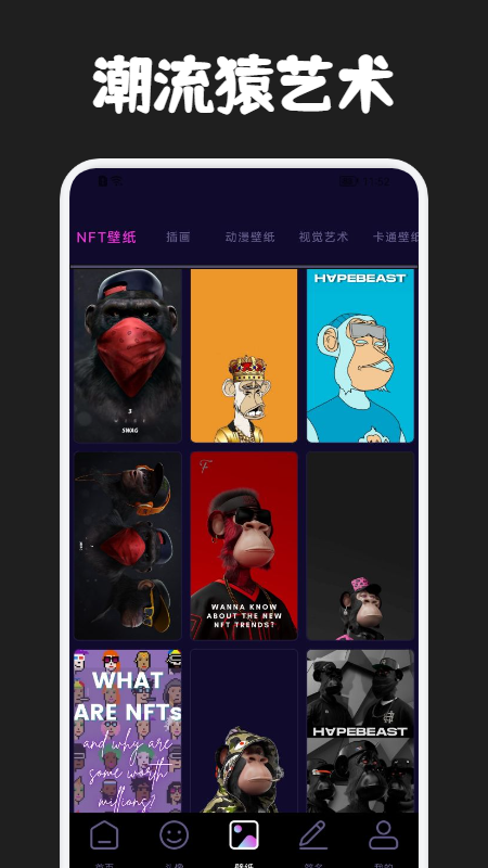 -潮流猿艺术:汇集当下最热门的潮流猿系列作品,包含限量版数字艺术品