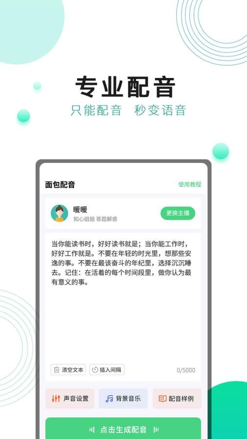 面包配音是一款集智能配音与音频剪辑于一体的创新服务平台。在这里,用户不仅能体验到AI语音合成的强大功能,还能享受真人主播带来的专业音质。平台提供超过100种不同风格的音色选择,从甜美萝莉到沉稳大叔应有尽有,支持个性化调节语速、语调等参数,让每个作品都能拥有独特的声音印记。更贴心的是,海量免费音效素材库持续更新,无论是短视频制作、有声读物还是商业广告,都能找到合适的配音方案。操作界面简洁直观,三步即可完成专业级配音,让声音创作变得前所未有的简单高效。