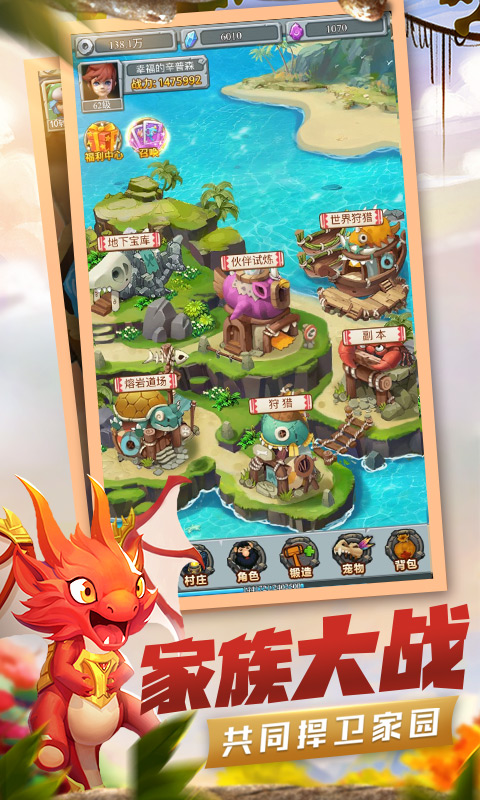 1、游戏采用全3D渲染技术打造的精美卡通画面,从随风摇曳的草丛到角色战斗时的粒子特效,每一帧都充满生动细节。特别是蛮兽释放技能时的光影效果,让回合制战斗也能呈现电影级视觉冲击。