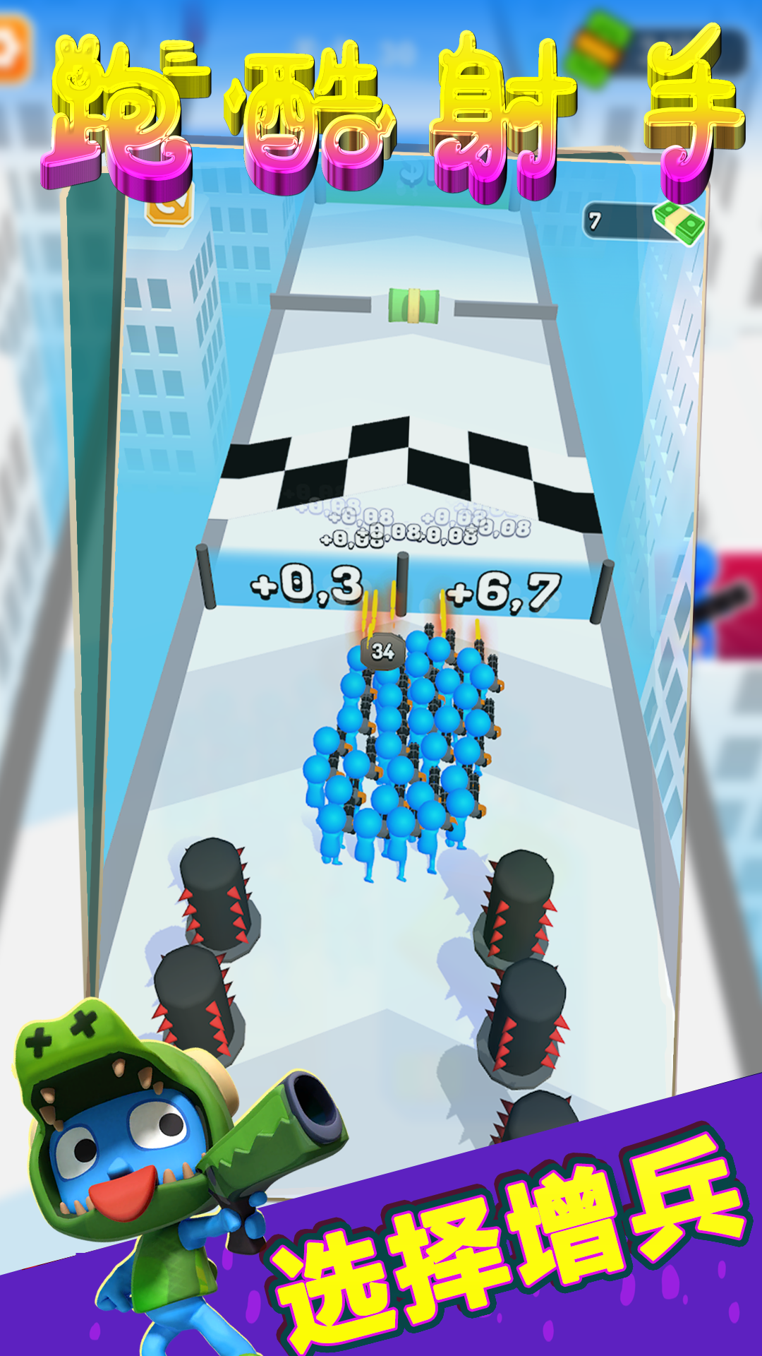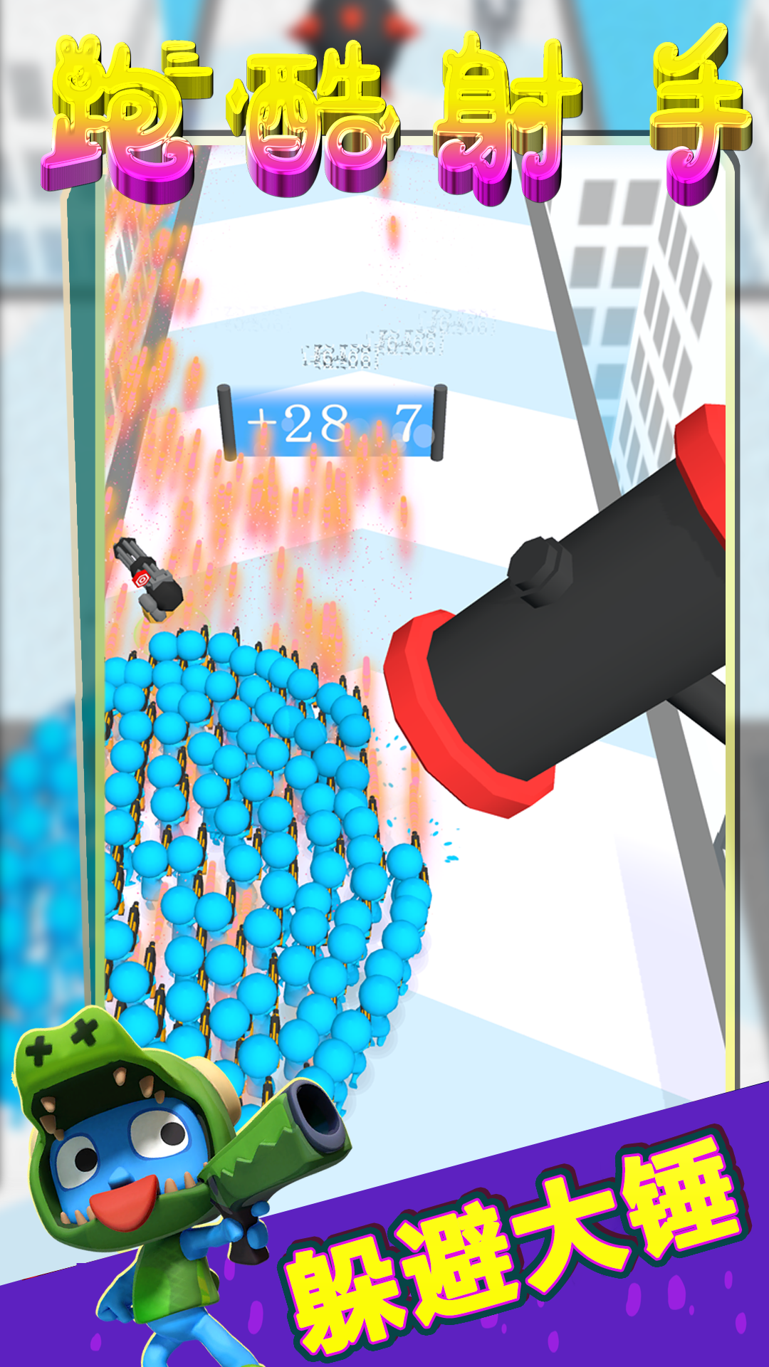 游戏将简单的数学运算与刺激的战斗完美结合,带来独特的闯关体验。玩家需要通过精准射击来击败沿途的敌人,同时收集各种强力武器道具。关卡中设置了不同功能的门禁系统,蓝色门可以安全通过并增加盟友数量,而红色门则会消耗你的兵力。你需要像解数学题一样精确计算兵力分配,既要保证主力部队的规模,又要派遣适量兵力削弱红色门禁。随着游戏进程,门禁机制会越来越复杂,考验玩家的即时决策能力。