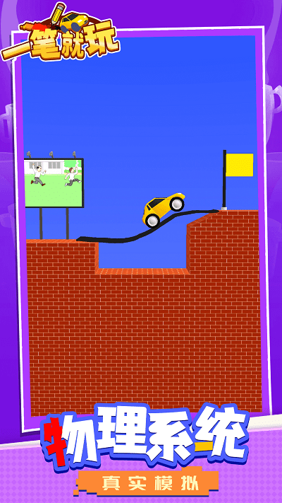 2、创新的画线机制让玩家可以创造弹跳平台,通过精确计算角度和力度,让汽车完成高难度跳跃获取额外积分;