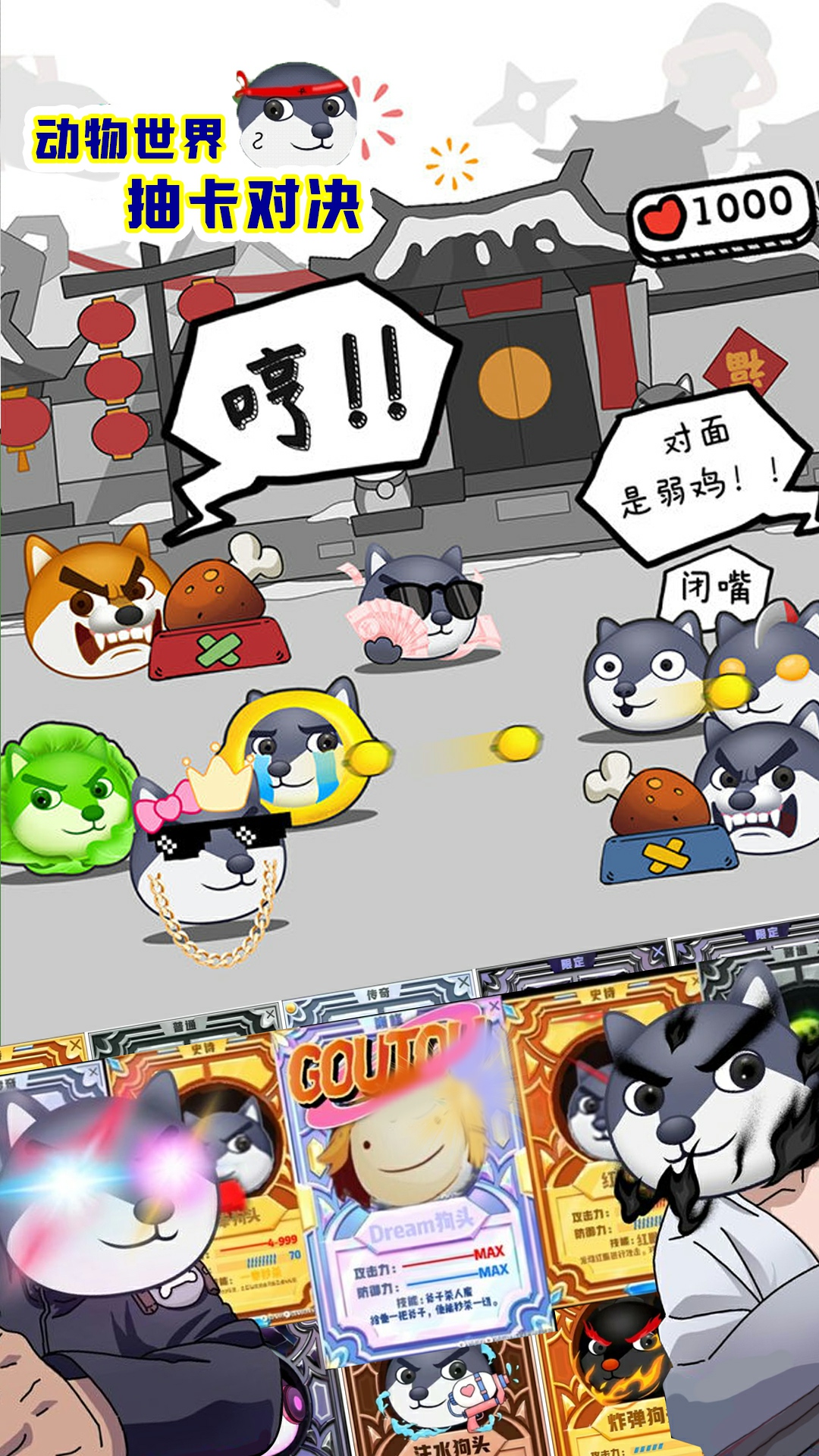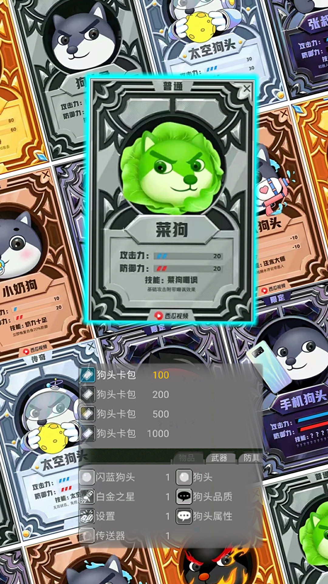 这是一款将塔防策略与卡牌收集完美结合的创新游戏。玩家从初始的普通狗头开始,通过不断抽卡扩充自己的军团。游戏中有数十种造型各异的狗头角色等待收集,从戴着VR眼镜的科技狗头到手持银剑的武士狗头,每个角色都配有专属动画特效。抽卡获得的狗头可以通过培养提升星级,解锁更强大的战斗形态。游戏特别设计了"狗头羁绊"系统,特定组合的狗头同时上场会触发特殊效果,让阵容搭配充满策略深度。每日登录还能获得限定款皮肤狗头,满足收藏爱好者的需求。