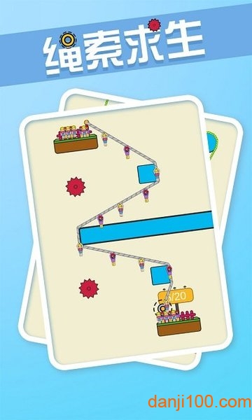 3、创新的多人救援评分系统,根据救援速度、绳索使用效率和幸存者完整度进行星级评定。完美通关需要精确控制绳索摆动节奏,在最短时间内让所有小人同步抵达安全点。