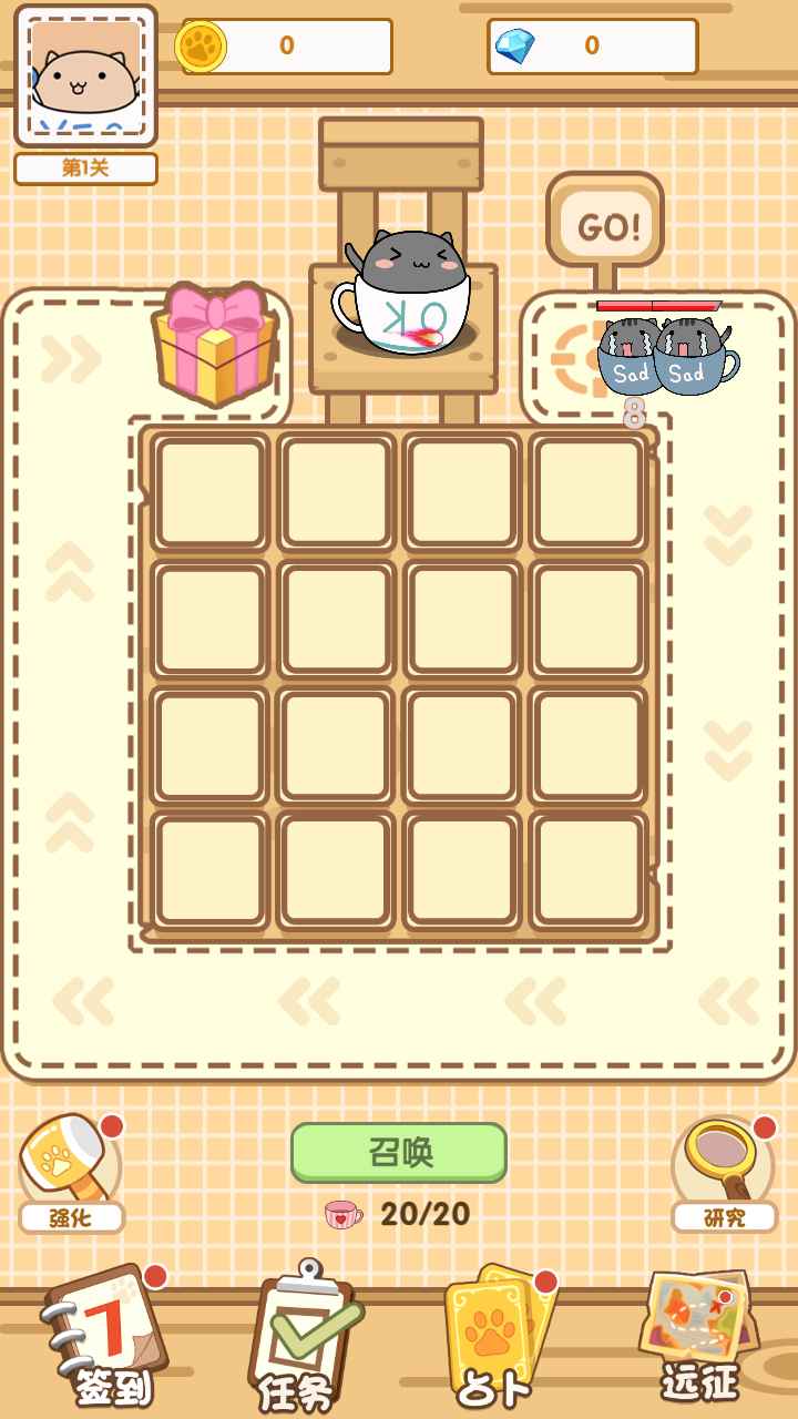 1、游戏采用Q版卡通画风,色彩明快活泼,为玩家带来轻松愉悦的视觉体验。2、以猫咪为主题的塔防玩法,玩家可以收集数十种不同品种的茶杯猫角色,每只猫咪都有独特的攻击方式和成长路线。3、通过自动发射炮弹的塔防机制,玩家需要合理布置防御阵型,抵御各种造型怪异的怪兽入侵。游戏还融入了装备强化系统,让玩家可以不断提升猫咪的战斗力。