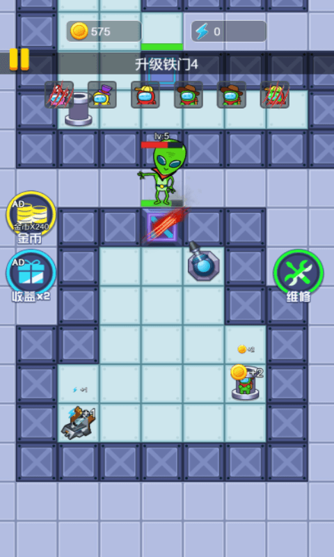 开局阶段的经济运营至关重要,建议采用"床铺优先"策略:前30秒专注将床铺升至2级(消耗150金币),同时用剩余资金建造1级铁门(100金币)。第二波资源要确保床铺收益达到每秒+8金币,这是前期防守的经济基础。炮塔建造建议采用"2-2-1"分布法:房门两侧各2座,走廊尽头1座,这样能形成无死角火力网。当遭遇持续攻击时,可临时出售非关键建筑回笼资金应急。电力系统是中期发展的关键,游戏机的最佳摆放位置是床铺周围3格范围内,这样能享受相邻加成。特别注意第5波攻击是个重要节点,此时必须确保拥有至少3座3级炮塔和5级铁门,否则很容易被突破防线。